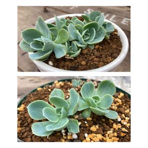 カリビアンブルー 大きめ株の胴切り 上 : 現在 下 : 昨年12月 ぎゅうぎゅう😊