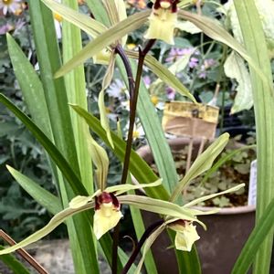 肥前寒蘭諫早産が咲いてきてます😀去年は花茎2本でしたが、今年は4本伸びてます😀日向寒蘭は1本だけ🥲柑橘系のいい香りです😊