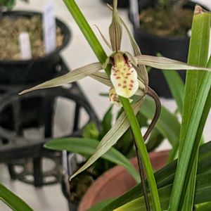 こんばんは♪ 昨日、近所の山野草店で購入しました。 土佐産の寒蘭です。 当初フウラン目当てで訪問したのですが、丁度開花した株でお値打ちの株があったので、半ば衝動買いでお迎えしてしまいました💦 花の姿がとても凛々しく、以前から憧れていた寒蘭…。 今回はキレイに咲いていますが、来季もうまく咲かせるのを目標にして頑張って育てていこうと思います😊