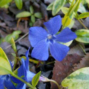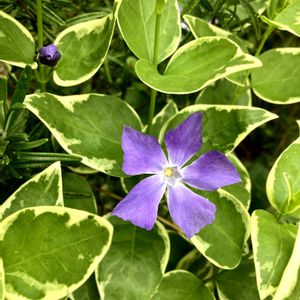 夜中にこっそり*͈ᴗ͈ˬᴗ͈ෆ 蔓日日草 ツルニチニチソウ 綺麗な斑入りの葉っぱの子と 普通の子 お花は一緒💙💜 爽やかなお色𓂃 ꙳⋆⸜(´˘`𖠇ຼ.) ⸝ꔛ💙💜 お疲れ様でした✩⃛∗*゚ おやすみなさい…✴︎🌙.°