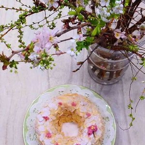 お教室でさくら風味のケーキを作り 啓翁桜と合わせてみました。 紅茶と共にぷち花見です🍰☕🌸