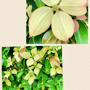 【ヤマボウシ(山法師)・ブルーミング・テトラ】 学名:Cornus Kousa.'Blooming tettra' おはようございます🪆皆様も良き一週間になりますよう 常緑性のヤマボウシと大輪の赤花種紅富士との交配種。日本初の2季咲き(返り咲き)秋には紅葉も楽しめ、実も甘いので食用になります。4つの花びらも小さく薄緑色からクリームがかった白へ変わります🌿🐈🤍♪5月撮影