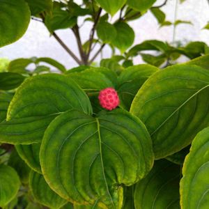 💚リクエストpic💚 ヤマボウシの花と果実 左pic : 今年4月の花 右pic : 今日の果実(緑が熟すと上のように赤くなります) 赤い果実は、甘く生で食べることができ、葉が美しく紅葉していきます。 紅葉後、落葉したら地植えする予定です。