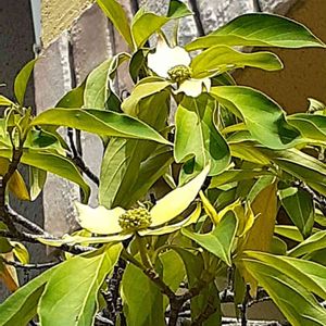 ヤマボウシ まだお花が小さいですが 我が家に来てはじめてのお花です😊 清々しい✨ 去年のお盆に旅行に行ってる間に 葉が見事に枯れて悲しかったけど 復活してくれてうれしい😭 ありがとう✨