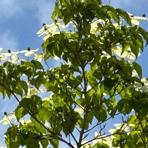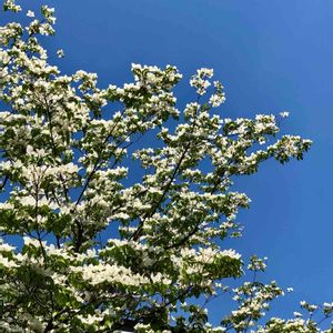 ヤマボウシが満開。青空に映える。