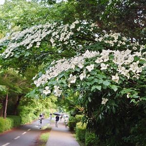 おはようございます。 今日は雨です。☔ お花に水やりしなくて良いです。😁 先日行った公園の街路樹、 ヤマボウシでしょうかね。🤔 緑に白い花が映えてます。☺️ 今日も一日 頑張っていきましょう。💪😉💪