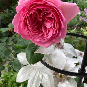 今日の2枚目〜 バラ プリンセス.アレキサンドラ.オブ.ケント🌹 株も育ち大きく咲いてくれ見応えあり美しいです🥰 お庭6番目〜 クレマチス 霞川 🤍③ 大輪に咲く白色に蕊がワイン色からグレーに変わり長く楽しめて✨ 昨年の母の日に貰ったお花のひとつ💐🪴💗 やっぱり白花です☺️ お隣さんとの境にあるロウバイの新芽🌿🌿🌿が目に優しいく広がる皐月 今日の微風が心地よいです〜☀️ 今日もありがとうございます😊 コメント欄開けるのを忘れてました😅