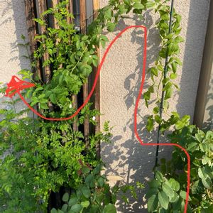 春にお迎えした 【つるバラ・エアインネルン アン ブロー】 気づくと支柱よりずっと背が伸びて 首をもたげていました 支柱の長さが180cmなので 2mは軽く超えています💨 株元に日が当たらないので 下の方の葉っぱが黄変しちゃってる💧 これから台風の季節がやって来ます🌀 早急に対策をしてあげないとね 暑いけれどそろそろ私の 『ガーデン夏休み』も終わりにしないとな😅