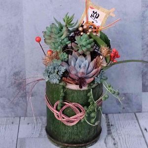 今日は寄せ植え体験のご予約で 竹の器にお正月寄せ植え されましたよ。 昨日の投稿を見てくださった方が 作る事は可能ですか? とのお問い合わせ。 ありがとうございます! で、 水引 私は苦手で結んでませんが お勧めした所、 チャレンジされて。 やっぱり水引あるのは 豪華になりますね!いいなぁ。 でも 私の委託先に並ぶ器には はありませんのでね(^_^ゞ ごめんなさいね。