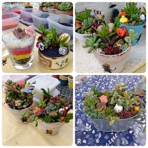 昨日 Rireマルシェ 三重トヨペット上野東インター店様 お世話になりありがとうございます! ハウスは不在が多く こういうイベントを見つけて 来ていただけた方もいて 有難いです。 寄せ植え体験もしていただき 楽しんでいただけたかなぁ😄 苗の大きさは違うといえど ほぼ同じものを使っていただいているのですが いろんな形に仕上がるので 完成を見せて頂くのが楽しみです♪ いつも早い時間に体験される方の 写真を撮り忘れてしまう😅 一部ご紹介😅 次回の秋祭りは ミニ寄せ植えとカラーサンドの予定 その次の、みえ花フェスタは クリスマスリメイク缶の箱庭と カラーサンドの予定 12月のいがぶらは 流木寄せ植えオンリー 1月からのマルシェは日程が 決まっていませんが(来年の雪はどうなの?1月2月は怖いよなぁ。) こんなものがしてみたいなぁ~ なんてのがあれば教えてください🤗 検討させていただきます♪ 寄せ植え教室のほうは、 インスタのハイライトにある 寄せ植え作品でお値段と要相談でお願いいたします。