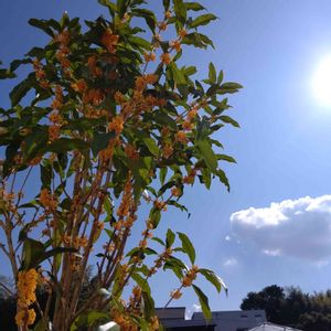 キンモクセイ うちのシンボルツリーになりました。今度は虫つかないでね😅 シンボルツリーにしては、 普通すぎるけど。。 好きな香りです♪