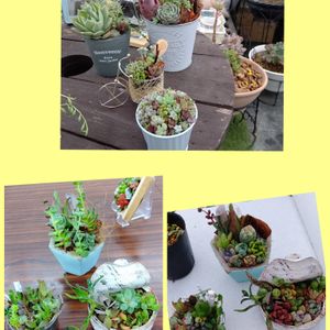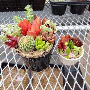 昨日は雨が降ってて騒がしく寒いしで 早めに引っ込みました。 それまでの間に作った寄せ植え幾つか。 あと ビフォーアフターという事で 少しご紹介 3ヶ月ほど前の寄せ植えで 日当たりは室内の灯りのみ 枯れてはいませんが 伸びています。 そこで 上部をカットしたものや 伸びてても雰囲気の良いものは そのままにして再活用し 新しい苗を追加して お仕立て直しさせていただきました。 同じようなミニ苗を使ったので お値段としたら 元々ご購入いただいた時の 2/3位の金額となります。 一度分解すると苗が足りなくなるので 追加の苗が必要になり 選ばれる苗によりお値段が変わるので 一概に2/3とか半額など言えないのですが。。 イメージしていただけたらなぁと 思います😄 あと、カットした下部の葉は 葉挿しとしてポットにお入れし 強制的に返却(笑)して 葉挿し体験をしてもらいます😁
