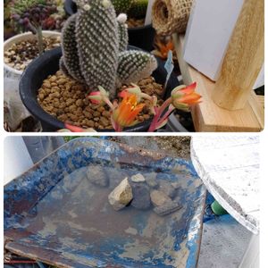 本日3日(水曜日)より7日(日曜日) まで、伊賀上野まち百貨店開催です。 告知黒板のお時間は 13時~16時となっていますが、晴天の日は 16時を過ぎても全然OKです! 熱中症対策をし、 慌てずゆる~くお越し下さいね。 助けて~!!! 岩場に足を取られた~!! もがけばもがくほど 挟まれていく~! てゆう子を見ながら お供の犬は 葉挿しの道を まっすぐ上がればいいものを 近道しようとするからやんか と呆れ顔 てゆう設定なんだけどね(笑) スターマーク 一昨日夕方 風が心地よく とゆうか強風?やったので お水をサラッとあげました。 綺麗だねぇお水をあげたあとって。