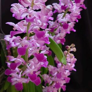 リンコスティリス セレスティス ピンク 咲きました❣️ 背景の色を変えると印象も変わる 3つある株のうち、2株にそれぞれ2つの花茎がつきました 香りもありますよ✨