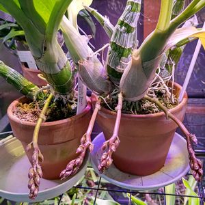 ムッチャ大株→作落ちして数バルブ→やや復活のフォルモサヌムさん😓真面目に育てれば今頃立派だったろうな🤔レティネルビスさんは30年くらいのオク人生で初発見😊しかも激安☺️前回のトリコフィラ失敗したので超湿潤状態で養生中😊webでは超強健と記載されてますが根が鉢に周るまでは絶対そんなこと無いです😭多分乾燥厳禁🚫