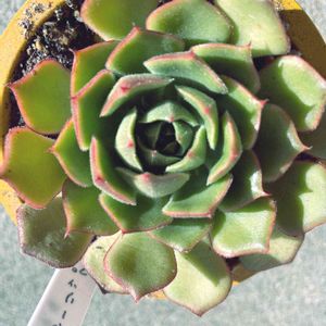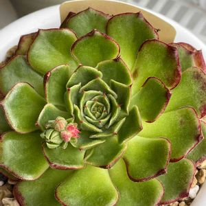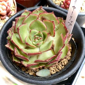 ふるさと納税返礼品エケベリア12個セット その⑥ファイヤーリップ❤️ in リメイクプラ鉢 届いたときはみどりんだったけど、だいぶいい感じになってきました! やっと半分まできました~✨