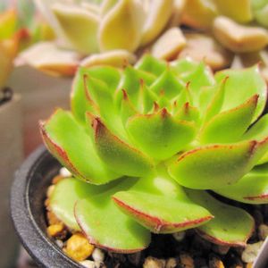 これも、ショップの寄せ植え棚に居た 🍂ファイヤーリップ エケベリア属 エケベリア信者ではないので、 そんなに気にしてなかったけど 目に付いてしまった!葉の周りが色が違うねぇ。 調べると、赤っぽくなるらしい。 面白いので、取り敢えず買っとくか こんなのも普及種なんだね😁 これからの季節は、ミドリンになるけど、 いつか寄せよう!