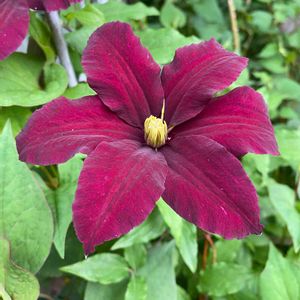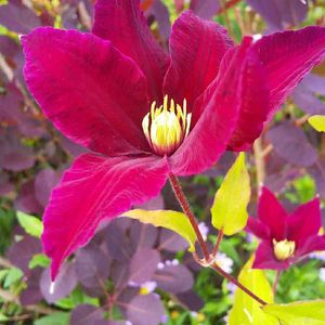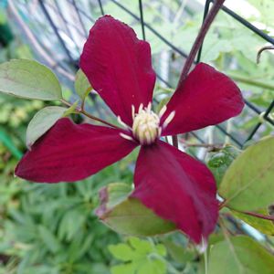 クレマチス🌸🌿⑦ ナイオビ 別名 ニオベ 深紅色の花が咲き進むと濃紅色へと変化する種💕 ‘ニオベ’の名の方が定着しているようです。 新旧両枝咲き