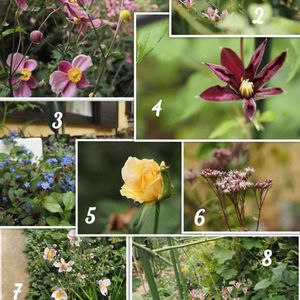 庭は閑散期であまり花は咲いていない 咲いている花の忘備録 シュウメイギク(秋明菊)とホトトギス(杜鵑草)とルリマツリモドキは花盛り シュウメイギク(秋明菊)は白色もpicにないけど咲いている バラとクレマチスはぽつりぽつりと咲き続ける リコリスとフロックスは終わりかけ ちょっと前まで咲いていた もうすぐ椿が咲く 1. シュウメイギク(秋明菊)濃いピンク色 2. ホトトギス(杜鵑草) 3. ルリマツリモドキ 4. クレマチス ニオベ 5.バラの名前は分からない 6. フジバカマ (今年は咲かないと思ってたら、咲いた♪) 7. シュウメイギク(秋明菊)薄いピンク色 8. ホトトギス(杜鵑草) 撮影日:9/27