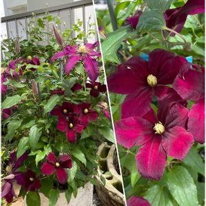 クレマチス/ニオベ ニオベも咲いてきました🙌💕 先日投稿した🌹薔薇マジェンタスカイと一緒に📸💓