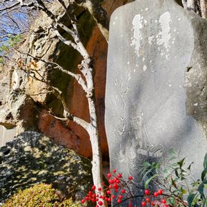 あけましておめでとうございます😊 今年の抱負を考えよう☝️ 元日のお花はナンテン 山形・山寺(立石寺)、蛙岩の脇にて、昨年12/9撮影