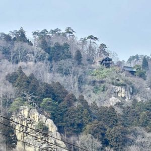 宝珠山立石寺(山寺) 駅ホームより望む… 百丈岩の平場に建つ、 ←五大堂と→開山堂 五大堂(五大明王を祀る道場 展望台) 開山堂(立石寺を開いた慈覚大師を祀る御堂) 天空の聖地ですね。