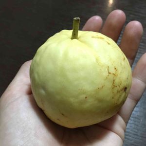 2018春に購入したグァバの木にできた唯一のグァバ💓10月下旬に採取し、1週間ほど追熟。いい香りが漂ってきたのでいただきました😋来年も楽しみです❤️
