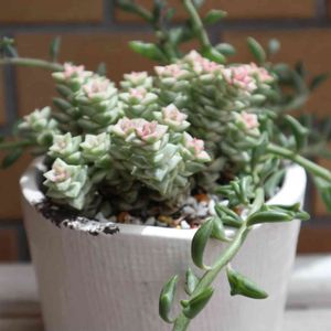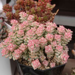 今日は梅雨の晴れ間… 久しぶりにガッツリ晴れて気温も上がりそうなんですが、日中は外出しないといけなくて…昨晩うっかり雨に濡らしてしまった子がいるので心配です💦 だいぶ日の角度が変わってきたのですが、最近ずっと曇りがちだったので、どの場所にどのくらい日が当たるのかもわかっておらず… ワゴンをウッドデッキの屋根の下に置くかどうかとか悩んでます。 外出が心配なんて、ペット飼ってるみたいですよねえ😅 picは久しぶりの謎多肉シリーズです。 この鉢は、家に少ししかいない子を集めているのですが…手前のピンクの子の名前がわかっていませんでした。 昨秋、カット苗セットで来た時はかなり小さくて、全然どんな姿なのかわからなかったのですが、最近だいぶ成長して特徴が出てきたな〜と思っていました。 他の方の投稿で見て、あっ、これ!と思ったのですが… そういえばちょっと前に多肉先輩の家でも見せてもらったんですよね。 群生していたのでイメージが違ってわかりませんでした😅 この子は、見た目も名前も可愛い 『マジカルキューティー』 だったのですね。 多肉先輩は、この子は液肥をあげるとピンクが消えるのであげないと言ってました。 可愛いのでもっと増やしたいです〜 ※2022/10/25に、この子は 『ファリナセア錦』 ではないかというのが判明。 マジカルキューティーではなかったようです…💦