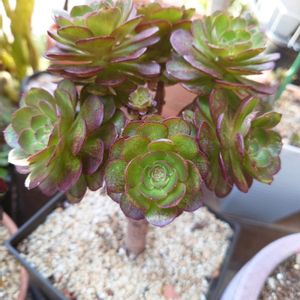 1/28にupしたアエオニウムたち。黒法師が黒光りしてる‼️🤩日中はベランダで日光浴させてます😄ハロウィンは子供出来ないなぁ~
