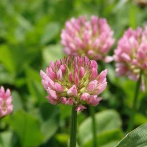 散歩中の林檎園にて だいぶ赤みの濃いモモイロシロツメクサ