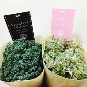オザキ4 ラスト! セダムたち♡ ずーーーーーっと探してたリトルミッシー、ようやくゲット!!! もう一個の名前わかんないけど、可愛いコンビ╰(*´︶`*)╯♡ 寄せ植えしよーっと♡