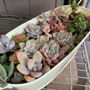 葉挿しっ子寄せプランター♡ 昨年10月に葉挿しっ子ばかりで 寄せ植えしました🤗💕 5ヶ月経過〜 爽やかな色合いから紅葉❤️して 深みのある色になった様な気がします☺️ 左の3個はアクセントに100均多肉を 入れました🤗💕 🏷横長ブリキ鉢 で10月のpicが見れます😊