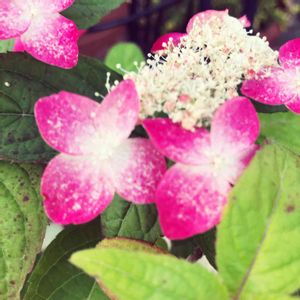 甘茶。 たいせつに育てた甲斐あってたくさん花をつけました。 この夏は昨年より夏越しさせやすければいいのですが。