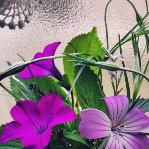 このペチュニア (犬散歩中、野良生え発見し、お持ち帰りした)は、バラ鉢に咲きだしているので、至る所に挿し木してます。 麦なでしこは、身長が高いため、折ってしまった💦 蕾が風にそよぐ姿は、確かに麦っぽい植物です。