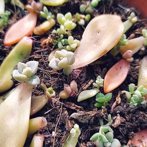 にょきにょき ܾ 𖥧𓇣𖦥𖥧𖥣 室内の日当たりの良い場所で、どんどん大きくなる葉挿しの赤ちゃんたち❤ 朧月の成長が特に凄い気がする! 小さい鉢に移動させてあげようかなぁ🤗