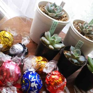 2日に連れて帰った白神さんの交配苗🌱 ちっさい苗3つは おまけで頂いちゃいました(*´罒`*)ニカッ♡ ちゃんと夏越し出来ますように⭐️ そして大好きな リンドールのチョコレート(❁´3`❁) ♡ 好きなものに囲まれると 自然と笑顔になっちゃいます🎵