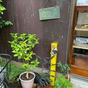 立水栓を黄色くペイントして、二口水栓金具を変えました。