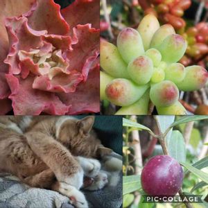 秋が深まってきたなあ ↖️高砂の翁、鮮やか ↗️この場所の乙女ちゃんはムッチムチ ↙️🐾肉球集会、本日も開催中 ฅ(´-ω-`)ฅホットカーペットに夢中 我が家ではこの状況をオフィシャル床暖dism♪と呼んでおります(ホカペだけど笑) ↘️オリーブが素敵カラーに💜