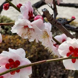 宝塚市にある中山寺に梅を見に行きました 一枚目二枚目は梅(思いのまま) 一本の木からピンクと白の花を咲かせる 三枚目四枚目は参道に並べられている鉢植えの花から、、、 美しいツバキの花 五枚目は河津桜 雨と風で傷んでいて綺麗な部分を探しました