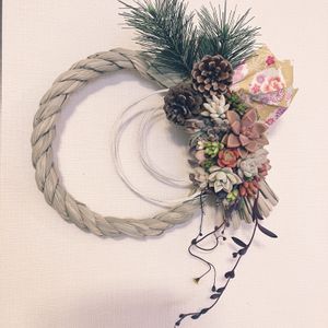 多肉のお正月飾り こちらのコラム?か何かで見かけて、挑戦してみました 100均素材+α 作成時の下敷き新聞 広告が微妙なのは後から気付きました🥶