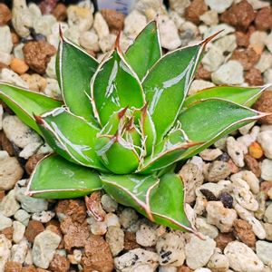 🏷️毎月7日はアガベの日 始めて参加させていただきます🖐️ 「笹の雪」好きなのでやっぱり姫も 並べちゃいます 綺麗なロゼット型とペンキの白さが 目にしみる〜 やはり上から見た姿が素敵ですねぇ〜