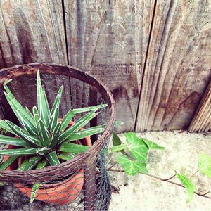 アガベ 棘がカゴを飛び出てきたので、 棘に付けていた葡萄のつぶを外しました🍇 そして、へデラはいつもカゴを通過する。 蔓を外すのは面倒で止めておきます☺️🤞