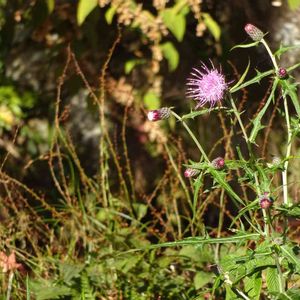 ノアザミ…かな 彼岸花の陰で “私もいるの‘’と 咲いているようでした🌸 2021.9/23撮影 埼玉県、横瀬の寺坂棚田にて。