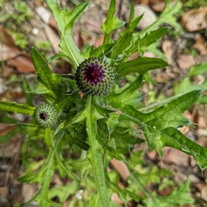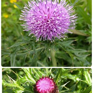 又またまた いつもの🐩散歩道で〜 待望のノアザミ見つけました〜❣️が…… 開きかけの花がなんだか変😱もしかして右端🐛にでもかじられたのかなぁ💦又見に行ってみよう❣️ 最近ではノアザミもめっきり減ってなかなか見かけません😂💦この辺りだけ(・・?)