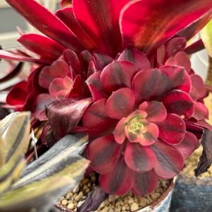 アエオニウム属のメデューサが少し大きく成長しました💖 日光浴が気持ちよさそう🥰 2枚目picは、やっとメデューサの赤ちゃんが一つ出てきました🙌 子株を増やすにはカットすればいいんだけどカットできな〜い😂 3枚目picは何度もUPしてるキウイ🧡🩷💚 この子は子株がいっぱい😍🎶
