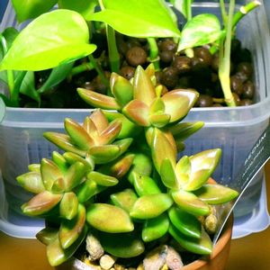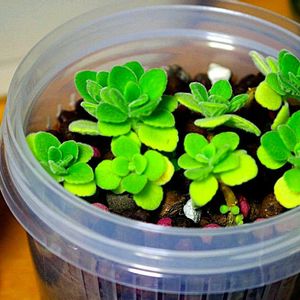 🪴我が家のセダム属の中では1番元気にしてくれている気がします😊 アドルフィー(銘月)のようです🙂 2.5号鉢で数年…増えてきました☆ 🪴セダムと言えばつぶつぶを頭に浮かべますけどセダム属も色々ありますね 🌱後ろには最近食品保存用のタッパー(カゴ付)の利用が増えてきましたがハイドロカルチャーのポトスが元気です😆 今日も一日お疲れ様でした🙇❣️