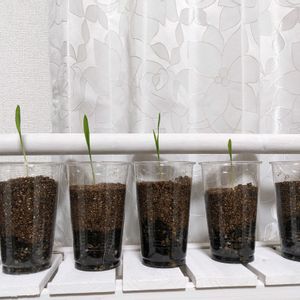 とうもろこしの種が発芽しました🌱 これくらいのサイズならインテリアとしても使えます♪ 植物もちっちゃいときはかわいいですね☀
