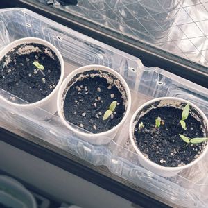日が当たる窓側はよく育つね(*^^*) 紙コップで発芽させてるのはそのうち土に植え替える予定✨ ペットボトルのニンジンと大根はこのまま大きくなって欲しい"(∩>ω<∩)" 大きなペットボトルに植え替えた大根1つがちょっと怪しいから元気な苗に交換しようかな(´ε`;)