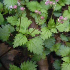花点草(カテンソウ) イラクサ科カテンソウ属の多年草。山野の木陰などに群生する。高さ10〜30㎝。葉は互生し、長さ幅とも1〜3㎝の菱形状卵形で、縁に深い鋸歯がある。花期は4~5月。雌雄同株。雄花序は上部の葉腋につき、長い柄がある。雄花の花被片は5個、雄しべも5個ある。蕾のときには雄しべが内側に曲がった形でしまい込まれているが、花が開くと雄しべが飛び出し、その勢いで花粉が弾け飛び、風が弱くても花粉を散布する。雌花序は柄がなく、葉腋にかたまってつくので目立たない。雌花の花被片は4個で、先端に剛毛がある。果実は痩果。花被に包まれ、熟すと花被から落ちる。 花被片が5個。花の中から順番に長い柄を伸ばし、その先に花粉をつけたものが出てくる。1つ2つ3つと、次々に出て、5つ出てくる。その先端が花粉がついた雄しべの葯である。これは小さくてまるで花が点のように見えるこから花点草の名がついた。また、近畿地方では阪神草(ハンシンソウ)という別名がある。『阪神=勝てん』という。知らんけど。 出典『野に咲く花』『色で見わけ五感で楽しむ野草図鑑』『四季の野の花図鑑』『野草の名前 春』