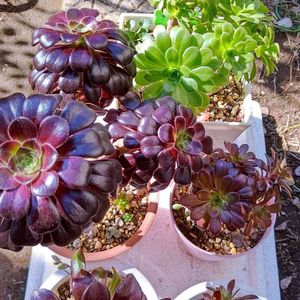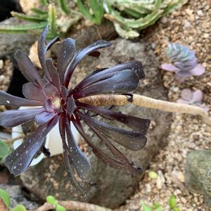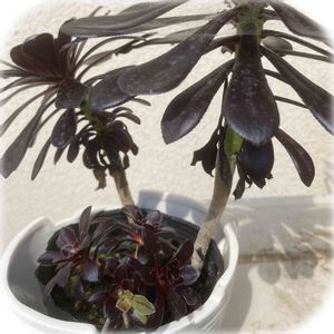 新入りのアエオニウム黒法師です! 前に花屋さんで立派な黒法師に一目惚れしましたが、お値段がちょっと高くて たまたまホームセンターで安くなっていたのを発見したのでお迎えしました!